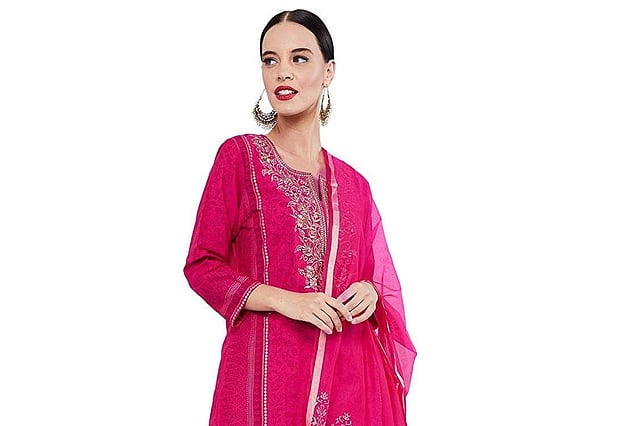 With the festive season around the corner, it is time to revamp your wardrobe to look your festive best. In pic: Max Women's Synthetic straight Salwar Suit Set Pink.