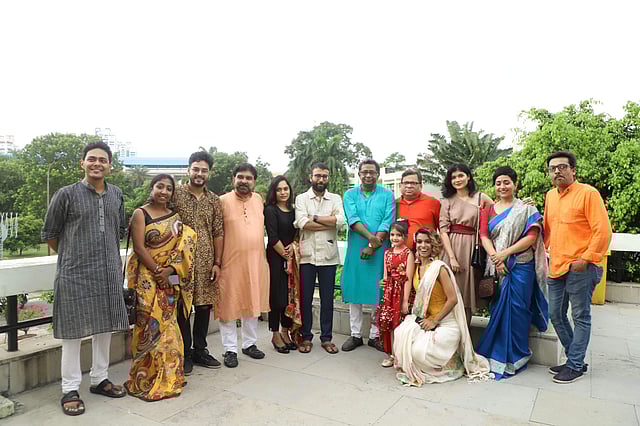 Silajit looked dapper in a lemon yellow shirt and studded denimsAnanya looked classy in a silk sareeFilmmaker Kamaleswar MukherjeeAnusha ViswanathanRoja Paromita DeyMoumita stole the show in a white linen jamdani paired with a canary yellow top. She posed with little TamannaDebasish