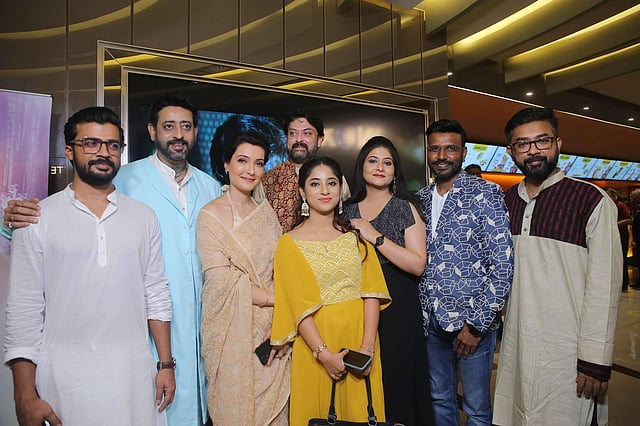Hridpindo lead Arpita Chatterjee dazzled in a neutral peach sareeShaheb Chattopadhyay was as charming as ever in a traditional lookFilmmaker Shieladitya Moulik looked dapper in a powder blue suitActor Kan Singh Sodha was seen in a blue printed blazer and denimsVocalist Mekhla stole hearts in a yellow ensembleNewly weds Pratik and AnkitaSubhrajit MitraDaminee Beni Basu was spotted in a fuschia top and denimsMusician Durnibar SahaRemoAnubhavAnyannaArjunnDebasish MondalRanojoySumana Das