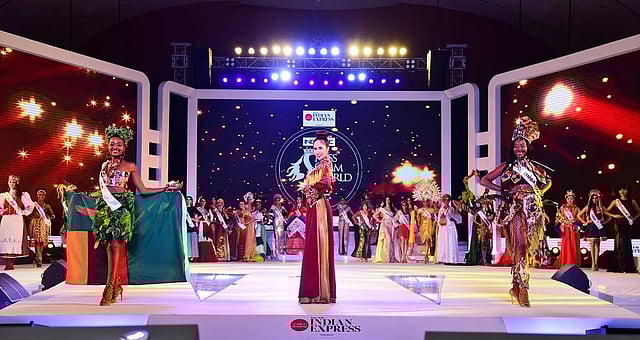 India's Aileena Amon walks the ramp in a gold sari at the Indulge Miss Glam World 2018 in Kochi.Indonesia's Jihan Putri walks the ramp in colourful traditional attire at Indulge Miss Glam World 2018 in Kochi.Malaysia's Tanalaksiumy Rayer walks the ramp in her colourful attire at Indulge Miss Glam World 2018 in Kochi.Kyrgystan's Abdymomunova Altynai graces the ramp in a black and green combination at Indulge Miss Glam World 2018 in Kochi.Kenya's Fahima Abdi walks the ramp with traditional red head gear and a white gown at Indulge Miss Glam World 2018.Kazakhstan's Nurjan Janypyeis walks the ramp in her fairy-like attire at Indulge Miss Glam World 2018Hong Kong's Liu Liran walks the stage in a flowing red gown at Indulge Miss Glam World 2018.Ghana's Peninnah Takyi walks the ramp in black and yellow prints at Indulge Miss Glam World 2018.China's Li Miao sets the ramp on fire with her traditional Qipao dress at Indulge Miss Glam World 2018.