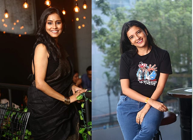 Ishita Sarkar and Anuradha Mukherjee pose at the trailer launch of Birohi and 5MM on the Rock at Five Mad Men