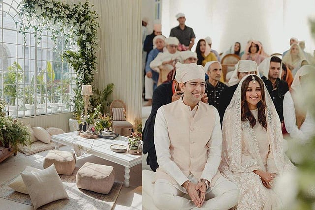 The venue, Kapurthala House, served as the perfect backdrop for the event, lavishly decorated but with a homely appeal. The photos shared by the company (The Wedding Design Company founded by Vandana Mohan) provide more insight into the thoughtful decor Parineeti and Raghav chose for their special day, from the styling of creepers on the old columns of the beautiful white building to low seating so friends and family could lounge comfortably. The details of the decor were shared in the caption of the post.