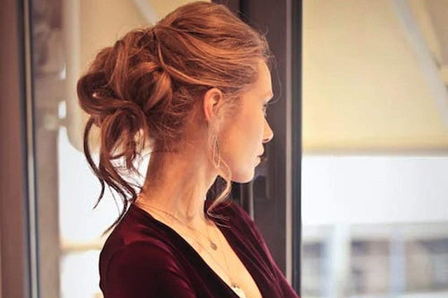 A sleek low bun is a great go-to look if you need to run straight from work to your romantic dinner date. Start by tying a low tight ponytail. Next, divide the ponytail into equal halves and tightly wrap the right over the left, repeating this till the bottom. Lastly, twist this braid up to create a tight low bun, securing it with a hair tie and some bobby pins. For an ultra-glossy finish, apply an anti-frizz hair serum on the braid and the rest of your hair to tame any flyaways.