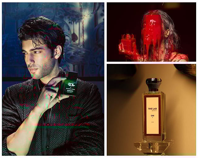 Presenting the gender-neutral Huemn x Olfa Originals Huemn fragrance — a seamless fusion of science and artistry. Pheromones, potent chemicals mimicking hormones, exert their influence beyond the body. This aromatic voyage blends fiery red chili with galbanum, basil, and black currant, unveiling a floral symphony featuring lily-of-the-valley, hyacinth, jasmine, ylang-ylang and almond. As the scent unfolds, oakmoss and patchouli weave with the captivating essence of oud, creating an earthy foundation. Encased in an iconic devil's horned silhouette, the red-hued bottle mirrors the chili's inspiration, transforming it into an objet d'art. ₹9,500. Available on huemn.in & olfaoriginals.com.