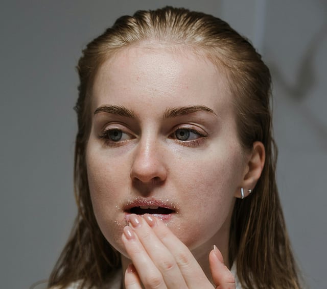 Apply the scrub to your lips using your fingertips. Gently massage in circular motions for about one minute.