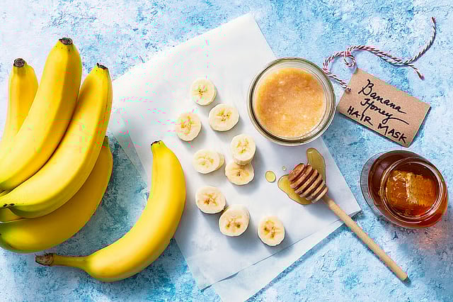 Banana hair pack-dry hair: Mash 2 bananas and 2 tsp honey and apply on hair for 30 minutes, and shampoo off for soft and shiny hair.