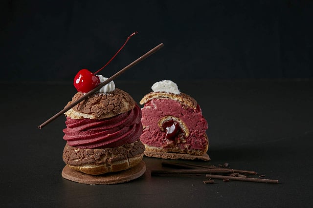 All the chocolate creations in the menu had us craving for more. The 8 Textures of Chocolate, a favourite of Elaine as well, has layers such as mousse, namelaka (a type of ganache), meringue, croustillant, cocoa crumbs and is a chocolate lover’s delight. The aptly named, Intense, is just 70 per cent high quality couverture chocolate and is luxurious as can be. The Black Forest Choux is a chocolate pâte sucrée and a choux pastry with a cherry-almond coulis filling. The filling gives the necessary tarty edge.
