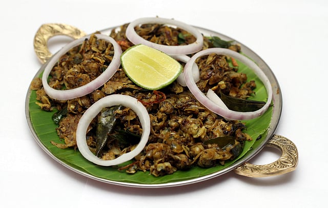 The combination of Pidiyum kozhi curryum (seasoned rice dumplings with chicken curry) make for a perfect meal as the light dumplings and the strong seasoned gravy perfectly balance each other. For the kanjiyum cheru payarum (rice gruel with seasoned green gram), you even get the traditional soup spoon made of jackfruit tree leaf. Yet another dish of popular choice is chenda kappayum kadharimulagum (steamed tapioca with crushed shallot and chilly chutney). And among the choice of desserts, we suggest you go for neyyil vaattiya eatha pazhavum thengayum(sautéed banana slices with grated coconut and sugar), which when  served with a scoop of vanilla ice-cream tastes fantastic.