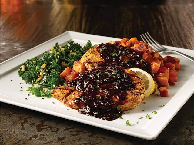 From the Super Foods menu, we are served the Fruits and Nut salad made with crisp lettuce, spinach and broccoli. The salad, which is topped with walnuts, apples, dried apricots and blueberries, is light and tasty. For something more filling, try their Pomegranate Honey Mustard Salmon. The not-so-salty and grilled salmon fillet catches our attention for the extra serving of toasted almonds, cranberry and blueberry couscous and ginger-garlic kale. A must-try dish is the Cherry Chipotle BBQ Chicken, the perfect accompaniment for their skinny drinks.