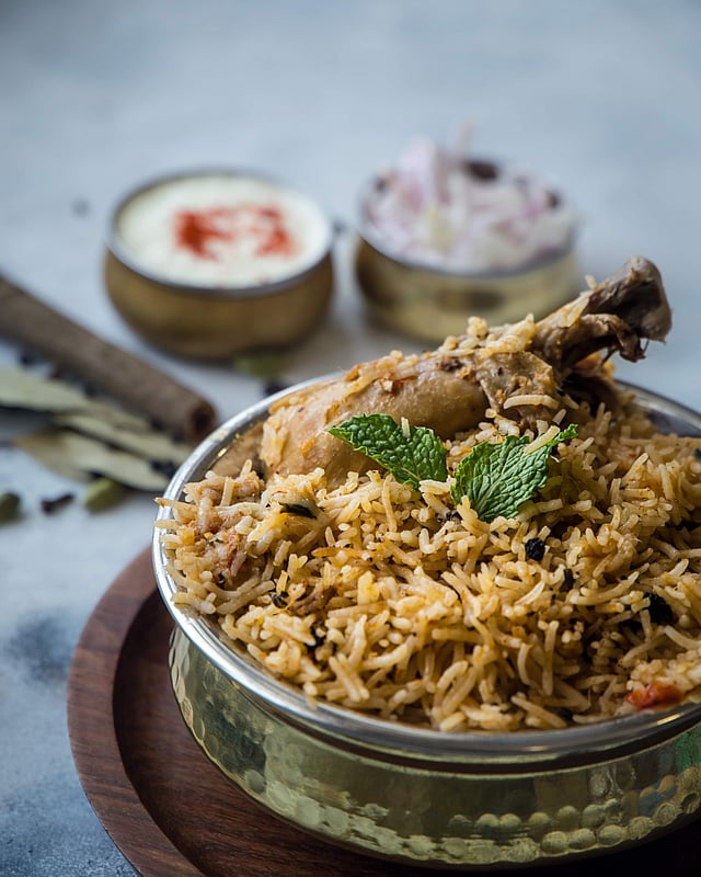 Apart from the veg and non-veg meals for lunch and dinner, Maplai’s Virundhu boasting over 50 dishes (`799, unlimited) comes highly recommended. We opt instead for their famous Madurai mutton biryani made of fragrant seeraga samba rice, falling-off-the-bone mutton, and perfectly spiced served with brinjal salna and raita.