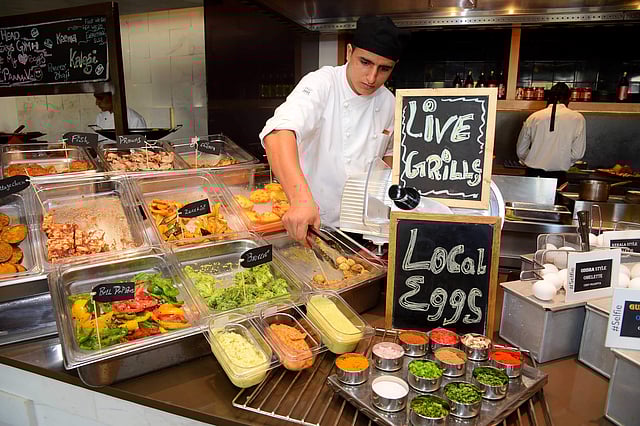 Led by Executive Sous Chef Bishen Negi, the menu offers a considerable spread — from sushi and teppenyaki to waffles, pancakes and Mediterr-anean mezze. This being the Inter-continental, we were not expecting a live dosa counter. For a South Indian touch though, there’s an Appam Counter, while the Pav Bhaji stall is popular, alongside ones for omelettes in Odisha, Guntur, Kerala and Tamil Nadu styles.