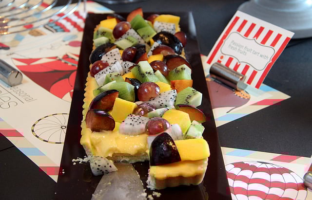 From the Greek Counter, I tried the Paneer Skewers, along with Falafel. This one was a slight disappointment, as the paneer pieces could’ve been softer. The counter also offered Kisir (made from Bulgur wheat and tomato), Muhammara (made from ground bell peppers), Baba Ghanoush and of course, hummus. Moving on to the main course, I chose to try Spicy Fish Fries, which were a hit. The fish was fried to perfection and the masala only made it better. Asian cuisine lovers can try momos and Thai curry. The circus-themed cake — wildberry mascarpone cake — was the biggest draw, not just for children, but adults too!