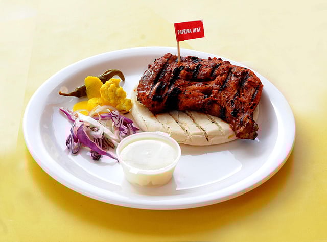 If you’re looking for ambience, you won’t find it at this 10-cover eatery. However, the main fare manages to compensate for the lack of dining space. The outlet is the brainchild of Zahir Shah, a Dubai-based food experimentalist, who was inspired by the food served at Nandos, a South African cuisine-based restaurant. With an amiable smile, he walks us through his journey in the food industry—which started with a six-year-old seafood speciality restaurant called Fort Kochi at Al Qusais in Dubai.