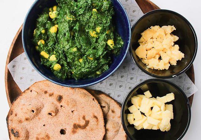 The main course had no less to offer in terms of innovation with comfort. We started with the Kumaon-Style Greens with Mandua Roti. A delicacy from Kumaon in Uttarakhand, the spinach and corn gravy is served with a millet roti. The next dish was a winner for us with its play on textures — the Ismaili Kofta Biryani, which was fragrant sour cherry rice enveloping an Indian style Scotch egg. Another main we sampled was the Jaipuri Gatta Kadi. The creamy gravy, with dumplings, is tempered with boriya chilli found in West India. Paired with their ghee rice, it’s pure comfort. For dessert, we were served the Bitter Chocolate and Jaggery Skillet — a warm skillet-sized cookie made with coconut jaggery sauce sourced from Tamil Nadu.