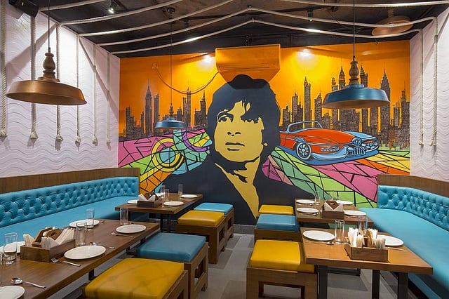 A ticket counter, resembling the Box Office of a movie theatre, welcomes you at the entry. Big posters of yesteryear Bolly stars and movies adorn the walls. As you enter the city’s novel, Bollywood themed restaurant, Friday Release in Salt Lake, you are indeed transported to the world of Hindi cinema.