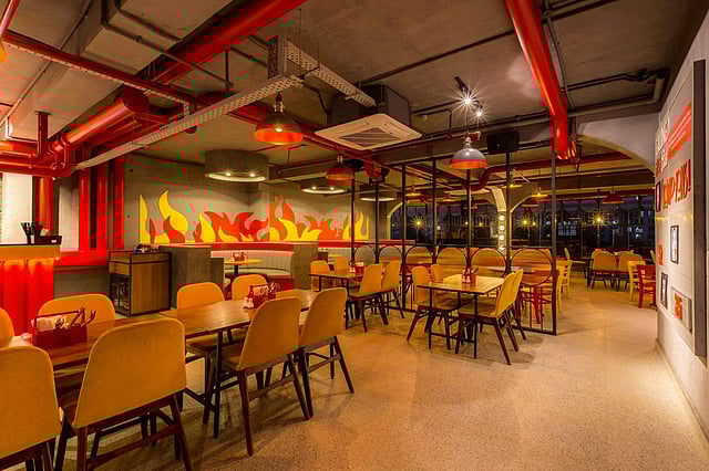 While, fire stations usually extinguish flames, the newly opened bar and restaurant, Fire Station, is lighting things up. Apart from the sizeable list of starters, the restaurant offers an eclectic mix of flaming cocktails. Even the interiors are designed with red and yellow flame-themed wall decals and chairs to match. Red lighting, red water pipes and traffic mirrors used for decor also adds another dimension to the restaurant’s aesthetic. With such a fiery theme we were certain Fire Station would surprise us with its offerings.