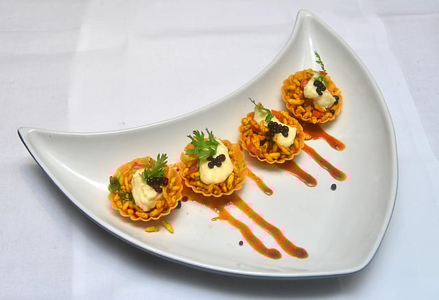 Sous Chef Amrick Singh, the man behind the new menu greets us with steaming bowls of flavourful mutton da shorba and a hearty smile. “We have retained some tried-and-tested dishes like the bharme aloo patohari and sarson da saag from the old menu, but the new menu also includes some dishes from the part of Punjab that lies in Pakistan, like the Lahori seekh and Sirindh di boti kebabs, among others,” the chef explains, as gol gappe loon mundi wale (pani puri for the uninitiated), arrive in shot glasses. Adding a touch of quirk to the jhalmuri is a generous dollop of cheese, which we discover, is not such a bad addition to bhel.