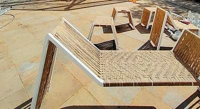 The pavilion will stand as a large urban charpai sculpture, gently shading Somerset House as it basks in the British sun. The weave of the charpai renders a play of light and shade to make a street square – a chowk, where chance encounters take place. The oversized web of the charpai represents India – modern in its outlook, rooted in its culture.