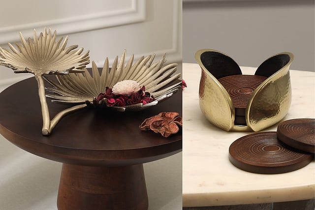 It is a harmonious blend of luxury and tradition, offering handcrafted pieces like accent tables, ornate wall mirrors, decorative serveware, and vibrant cushions, that elevate the ambiance of any celebration.
