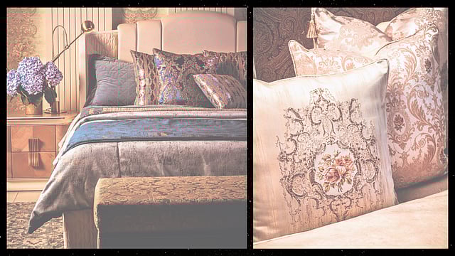 The collection’s bedscape is nothing short of a visual spectacle. Crafted from luxurious poly silk jacquard, each piece offers a soft, sensorial experience with textured finishes that evoke a sense of tranquil repose. Available in an array of colours—from soft pastels like beige, pink, and blue, to deeper jewel tones and earthy hues—the pieces are accentuated with rich golden touches that create an atmosphere of pure opulence.