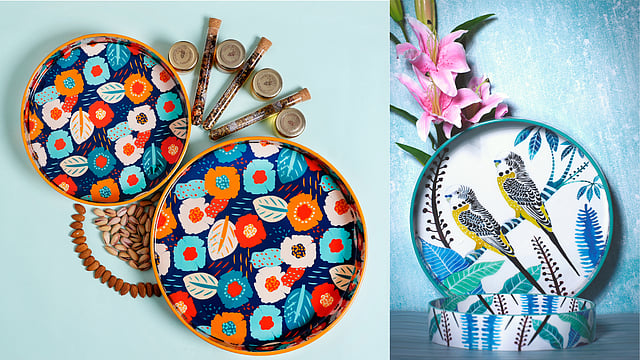 Each tray is handcrafted from premium wood by skilled rural artisans in North India. From carving to painting and polishing, every piece is unique and detailed. “The floral designs are inspired by nature and rendered with delicate care, offering a blend of durability and artistry,” adds Arushi.