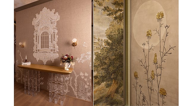 When imagining where these designs would live, the studio envisioned interiors that balance visual impact with warmth. “It will create a strong visual moment while still keeping the atmosphere warm and welcoming,” Neha adds. Living rooms, lounge areas and entryways make ideal settings for a statement wall, while bedrooms, reading corners and boutique hospitality spaces can benefit from the collection’s soft elegance and artistic character.