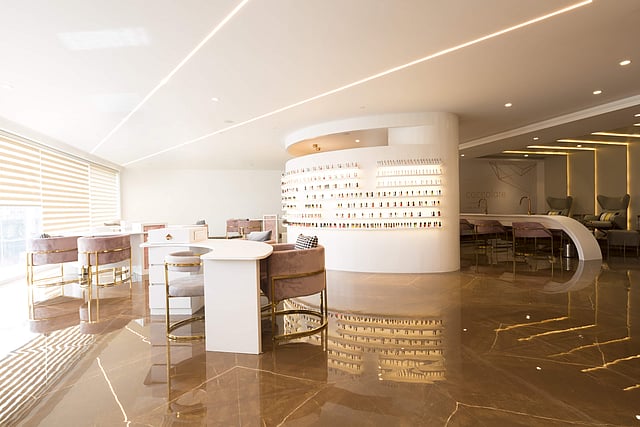 The rose gold accents of the salon and the pristine white walls with aquamarine and peach furniture are soothing to the eyes from the word go. The outlet has a special pedicure station, a room dedicated solely to lash and brows and also a quaint little café, where you can grab a cup of coffee as you relax for your mani-pedi. When you walk into the brow section, their experts help you choose a style that suits your face structure. Yashika insists that the permanent makeup and micro-blading techniques in the brow section follow stringent safety norms and might not be suitable for those who have sensitive skin. To make your lashes stand out, they offer six different effects and volumes ranging from 1D to 8D. Lumbini informs, “We don’t have services like waxing and threading as we wanted to focus exclusively on nails and lashes and brows.”