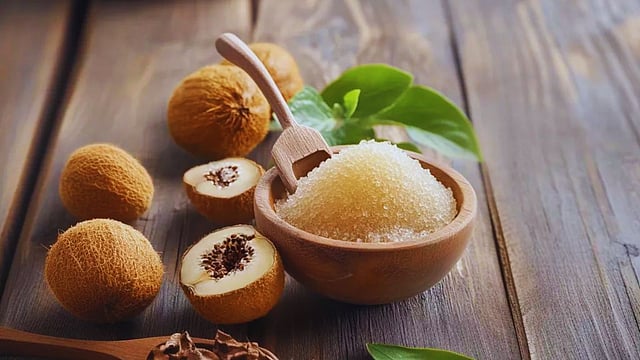 Monk fruit sweetener is made from the extract derived from dried fruit. The extract is 150-250 times sweeter than table sugar and does not raise blood glucose levels.