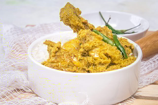 Serve posto murgi with steamed rice.