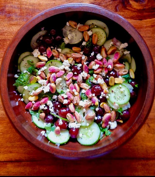 Cucumber & grapes salad with pistachio & feta cheese