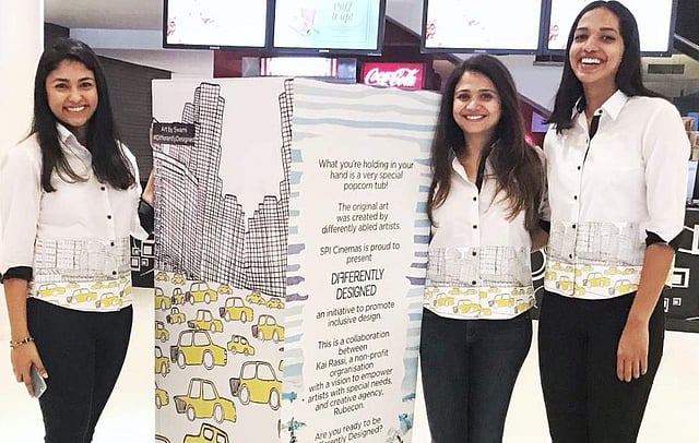 Movie buffs in Chennai will have an element of art added to their food tray for a month. Thanks to SPI Cinemas, commonly known as Sathyam Cinemas, the popcorn tubs and cases will now have artworks by differently abled artists at Kai Rassi, a city-based NGO. Founded by Chennai-based Indira Reddy, Divya Rao and Kadambari Narendran, Kai Rassi in association with Rubecon, the Chennai-based design agency will present Differently Designed, a platform for differently abled artists to display their talent.
