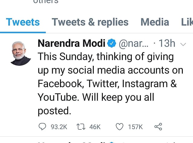 In his tweet, PM Modi has clearly mentioned his social media accounts on four different platforms - Facebook, Twitter, Instagram and YouTube - which he is thinking of giving up.