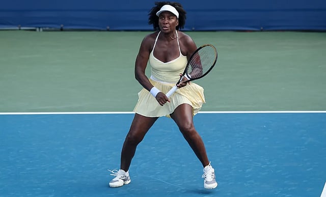 The 45-year-old Williams, an owner of 21 Grand Slam titles across singles and doubles, smiled incredulously, as did the other three players involved in the match in front of a full crowd that eventually included NBA star Kevin Durant. And then Williams carried on, displaying her trademark power on some strokes while teaming with Hailey Baptiste for a 6-3, 6-1 victory against 2014 Wimbledon runner-up Eugenie Bouchard and Clervie Ngounoue.