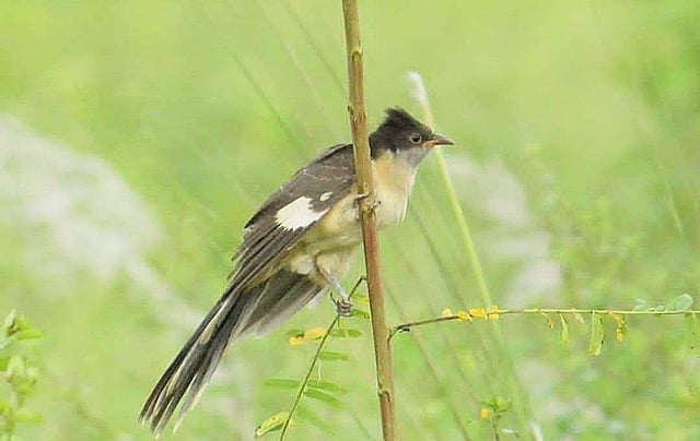 Jacobin Cuckoo, the partial migratory birds from Africa will follow its prey, the Globe Skimmer dragonflies, across the Indian Ocean to the jungles of central India this season.