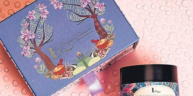Bio-retinol Age-Defying Potion by Lilaa Organic Skincare is a product made to wow. The artfully designed pull-out box with biophilic motifs is the first thing to catch your attention. The moisturiser also packs in the natural goodness Ayurveda has to offer.