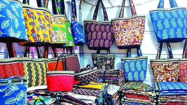 Speaking to one of the pop-up merchants, Usha Ben from Gujarat, explains why her bandhini saris are unique. “Gujarat’s bandhani products have a unique, brighter shade of red and maroon in comparison to other states. This happens because we get vastly different hue owing to the difference in water quality,” she says.