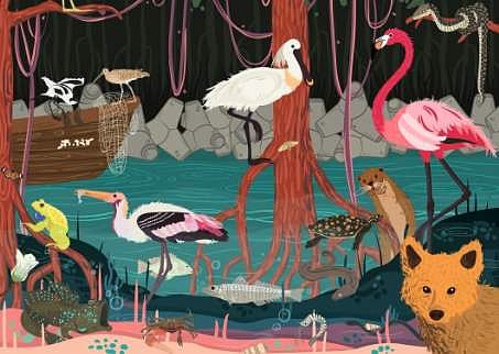 While some artists like Nitasha Nambiar and Mrinmayi Dalvi focus on how mangroves act as natural buffers against coastal erosion and flooding, Tanya Timble and Khyati Patkar’s work show a thriving home to countless species of flora and fauna. The sustainable lifestyle aspects of Mumbai’s Koli communities, who are dependent on the mangroves for their survival, have been vividly captured by artists Gary Curzai and Niyosha Bhagat. On the other hand, illustrators Harmeet Rahal and Sid G displayed the inevitable rise in sea levels through their paintings.