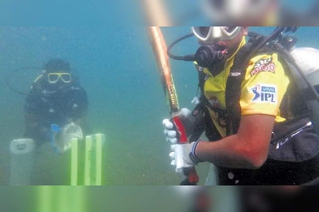 Diving below 60 feet in Neelankarai, on May 30, Aravind Tharunsri, a scuba diving instructor and fitness enthusiast, along with his team, went underwater and played cricket to commemorate CSK’s victory. Aravind runs a scuba diving centre in Puducherry and trains a few governmental organisations and individuals in diving. “Our main objective is to help with marine conservation and clean up plastic pollution. Besides shore clean-ups, we also focus on underwater cleaning to help with conservation against plastic pollution,” he says.