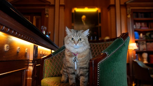 Take Lilibet, for example. She’s a Siberian Forest cat who spends one of her nine lives stretching her toe beans and snoozing by the fire at the five-star Lanesborough Hotel in London. Plenty of people check in just to check out the resident cat, who is named after Queen Elizabeth II, says managing director Stuart Geddes. And Lilibet, who has hypoallergenic fur, isn’t the only cat living in a grand British building.