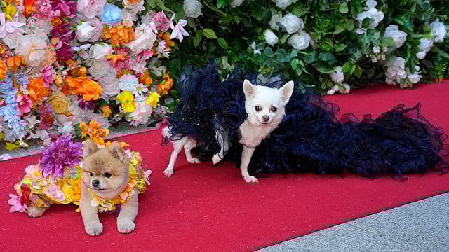 Most of the furry fashionistas were pint-sized — even the role of Chris Hemsworth was played by a shih tzu — though there was a Leonberger in the mix. Some of the Met Gala's most talked about stars were represented: Daffodil the Pomeranian as Jennifer Lopez, Kimba the chihuahua in one of Zendaya's looks, Miley-Jo the Chorkie as Cardi B and Bastian the terrier as Colman Domingo. This year's gala dress code was the Garden of Time, accompanying the Met's “Sleeping Beauties: Reawakening Fashion” exhibit.