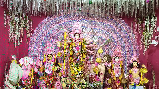 In West Bengal, Navratri culminates in the grand Durga Puja festival. For Bengalis, this is not just a religious celebration but a cultural extravaganza. Elaborate pandals (temporary structures) are set up to house idols of Goddess Durga, which are intricately crafted. Each pandal has a unique theme, drawing thousands of visitors. The festival is marked by the beating of dhak drums, traditional dances, and rituals that glorify the goddess. On the last day, Vijaya Dashami, the idols are immersed in water bodies, symbolising Durga's return to her heavenly abode.