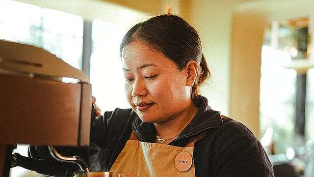 I recognised her instantly. She works at a café I frequent — OMO Café in Gurugram — standing behind the coffee counter with an air of quiet authority. Her name’s Manbiakkim, though everyone calls her Kim. Twenty-eight, from Manipur, chief barista, and, interestingly enough, a bit of an Instagram sensation thanks to her funny coffee reels. Which is why her reserved demeanour at the party surprised me.