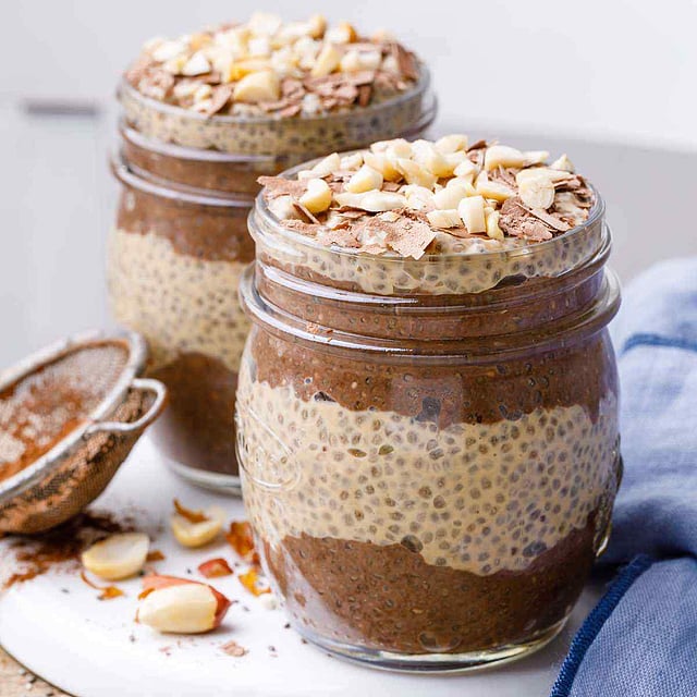 3. To arrange the parfait, take a glass or bowl. Spoon half of the soaked oats at the bottom. Drizzle a little honey. Add grated Fabelle chocolate shavings. Then layer with soaked chia seeds. Again, place a layer of oats. Drizzle honey. Sprinkle cinnamon powder. Add soaked chia seeds and finally the Fabelle chocolate shavings layer