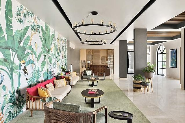 A mix of decor styles including minimal, bohemian and contemporary surround me in the lobby as I sip on their signature Ms Cohen’s apple tea (or coffee, as per preference). The centre of attraction, however, is a tile art that covers the wall—an ode by artist Shahul Kollengode to the tropical flora and fauna of Kerala.
