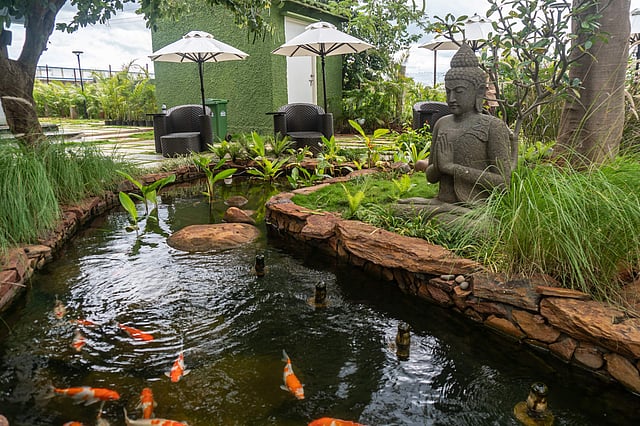 Next, it was time for our wine tasting session. The lounge has a chic indoor restaurant, but we chose to sit by the serene koi pond in the outdoor area. Yathin took us through some of the bottles that the brand has on their portfolio. Starting with sparkling wines and rosés, we made our way to crisp whites and then ended the session with rich and elegant reds. We learnt what one can glean from the colours in the glass, swirling