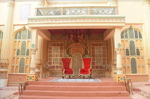 A walk little ahead from the main entrance, opposite the set of Kaun Banega Crorepati we were in Rajasthan. Not literally but visually. This was a set of historical movies based in the royal state. The colourful jharokhas, classic balconies and royal chapels with paintings of processions of the Mughal and Rajput eras are part of the sets shown in some Bollywood movies. Narendra Rahurikar, the brain behind the Bollywood Theme Park reveals that these sets are made of fibre and rubber. “So the people seeing from far would think this is made of stones but it’s not. So when they come here we explain to them about set making,” shares Narendra, who is the managing director of D’fine Art. Narendra collaborated with Film City and MOS Utility Pvt Ltd for the project. “When people come to Mumbai they want to see film city but they are not allowed inside so I collaborated with the state government to make something where people can have glimpses of Bollywood,” says Narendra, who has designed sets for over 50 films in the last two decades.