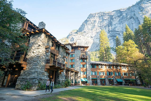 Opened in 1927, The Ahwahnee reflects the park’s rugged cliffs, waterfalls and majestic trees in its architectural elements and décor. This rustic, eclectic and ultra-cosy hotel is set against Yosemite Falls, Half Dome and Glacier Point. The grand entrance, with the wooden slab doors and floor-to-ceiling windows beautifully depict the grandeur of the property. The grand dining room features spectacular views of Yosemite Falls from the corner alcove window. The hotel is centrally located, with hiking trails, Yosemite Falls and other outdoor activities right next to it. Between its dining, atmosphere, luxurious stay, surrounding scenery and the magic of Yosemite, your experience at The Ahwahnee is hard to replicate.