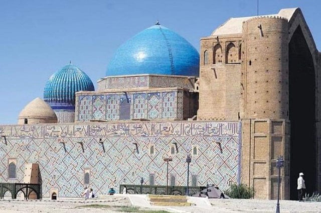 It is a scenic drive to Turkestan from Shymkent in Southern Kazakhstan, about 680 km from Almaty, the country’s largest city. The sepia landscape is stark and generally unpeopled, with camel caravans lumbering along. Turkestan, the spiritual centre of Kazakhstan used to be home to the 11th-century Sufi mystic, Khoja Ahmed Yasawi. Once the hub of art, science and culture which straddled the crossroads of the ancient Silk Route, it later became the political pivot of the Kazakh steppes. It is believed that the Turkic people, an ethnic group with a global population of approximately 160 million, originated here.