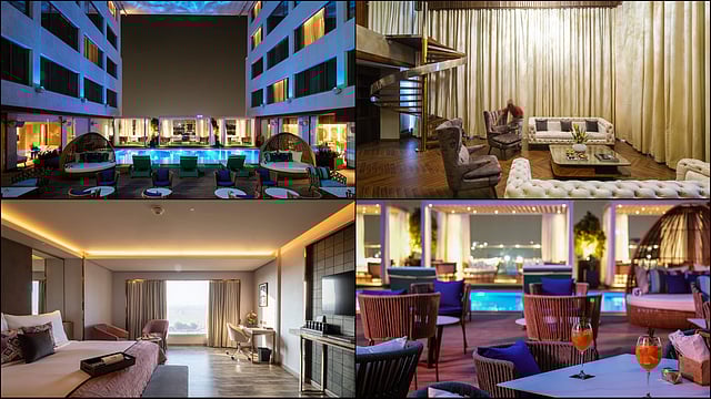suggest you take things a notch higher with the duplex Presidential Suite that exudes a classic Hollywood movie vibe. A rose-gold spiral staircase, statement lounge seating arrangement and an edgy chandelier set against the backdrop of the city view through top-to-toe glass walls made our jaws drop with its elegance at night, not to mention the fully remote controlled curtains and lights.
