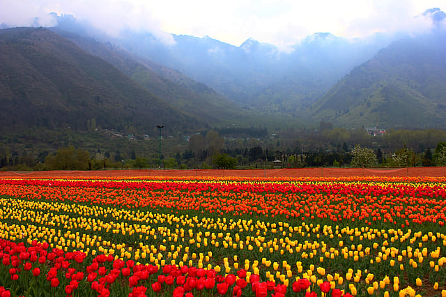 If you have plans to travel to Jammu and Kashmir soon, here's an update for you. The Indira Gandhi Memorial Tulip Garden located in Srinagar will be open to visitors starting March 19. This park is the largest tulip garden in Asia and showcases a diverse collection of fully blossomed tulips every spring for a duration of three to five weeks. The garden is situated at the base of the Zabarwan mountain range and overlooks the beautiful Dal Lake. Moreover, the annual Tulip Festival will take place at this garden in April.